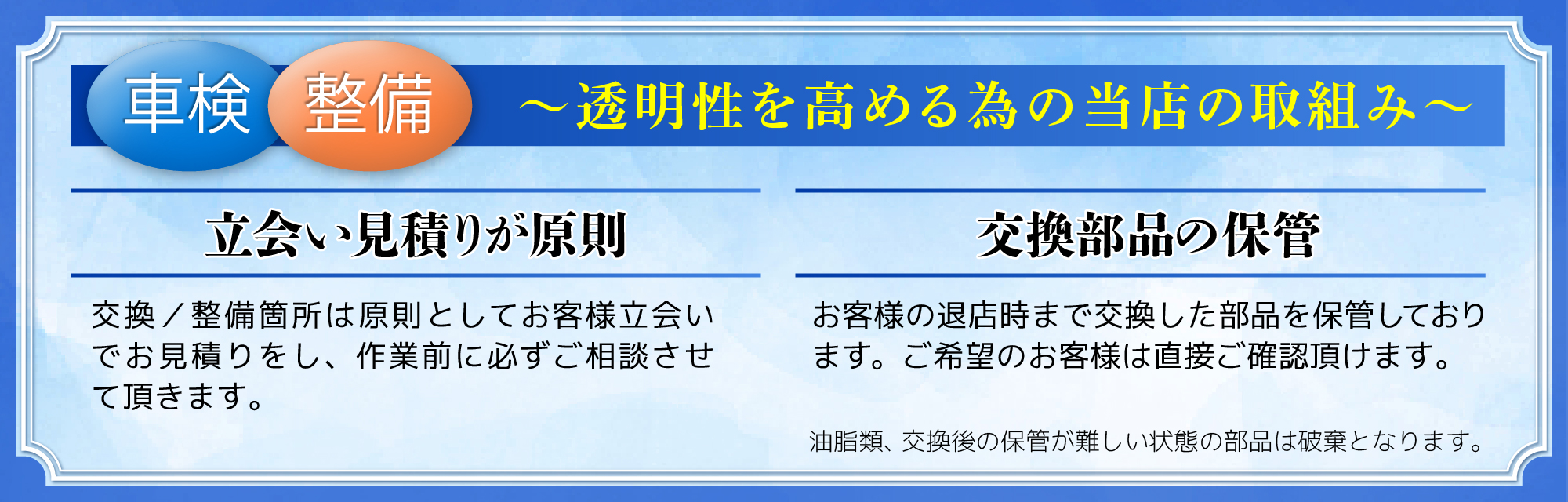 車検や部品等の交換も、丁寧な説明でお客様との事前の確認がしっかりとされていて、素晴らしいと感じました。安心してお任せできるお店だと思いました。