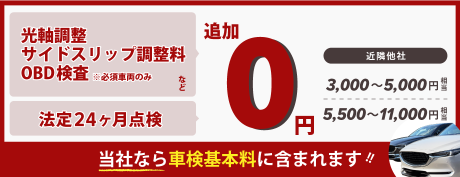 当店では上記のすべて、ホームページに記載してある車検基本料に含まれていますので、ご安心ください。
